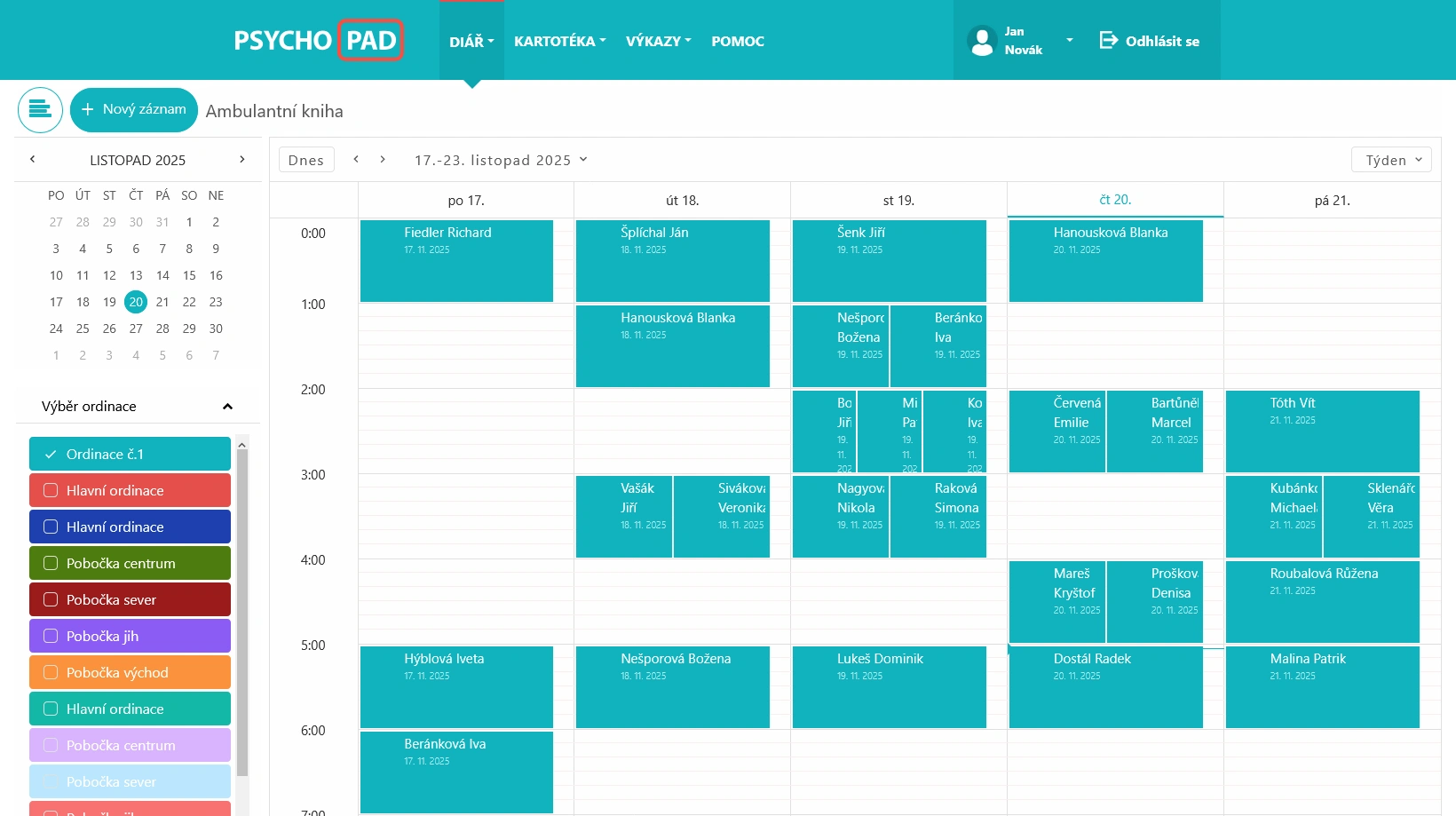 Screenshot ambulantní knihy v PSYCHOPAD aplikaci